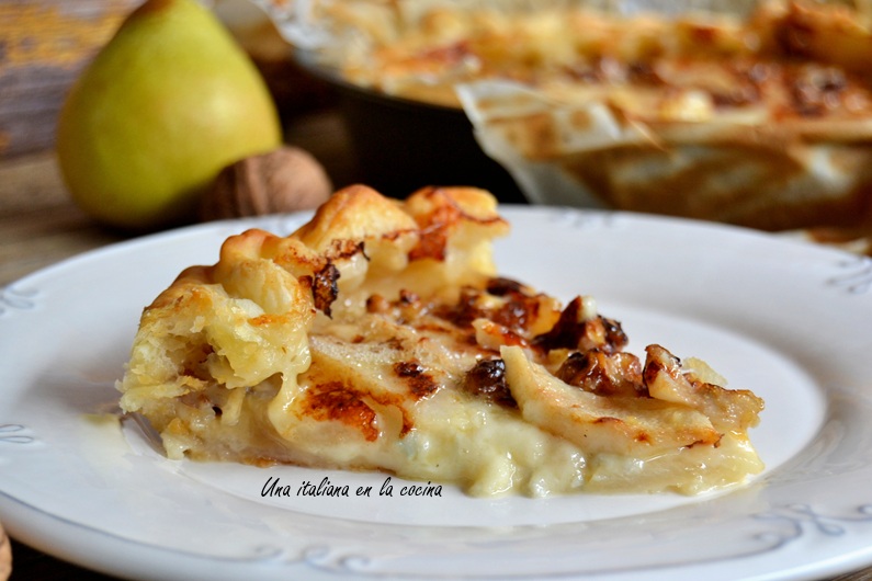 El hojaldre con gorgonzola, peras y nueces es una tarta salada que viene bien para todas las ocasiones. Es una receta facilísima que se prepara en menos de 5 minutos. Apta también para quien no sabe cocinar queda siempre espectacular. Perfecta para preparar una cena especial solo para ti o para compartir en un aperitivo o en un tapeo con amigos.